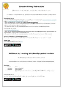 Information – School Gateway, Evidence for Learning (EfL) Family app, Applying for Free School Meals 22.10.25
