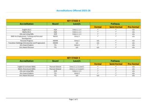 Accreditations Offered 2025-2026